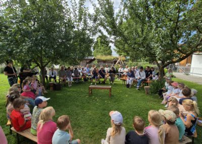 Uns ist es sehr wichtig, ein vertrauensvolles Verhältnis zu den Kindern sowie ein partnerschaftliches Miteinander zu haben. Zudem liegt uns der Kontakt mit der Natur und die gemeinsame Brotzeit sehr am Herzen. Die Kinder im Alter von theoretisch 2,5 bis 6 Jahren können in unserem großzügigen Garten mit Wasserspielplatz und den vielen Tieren (Ziegen, Eseln, Hasen und Meerschweinchen…) das „Kind sein“ ganz anders erleben und begreifen. Im Normalfall nehmen wir Kinder erst im Alter von 3 Jahren auf. Die Kinder werden sonst in der Großgruppe überfordert. Auf unserem Naturlandbetrieb mit der Öko Betriebsnummer DE-BY-037-20059-AD erleben sie den Jahresablauf in der Landwirtschaft und wachsen in einer sehr familiären und vertrauten Umgebung auf.
